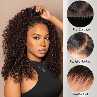 Kinky Curly Chocolate Brown Invisi Strap 360 Lace Wig Pre Everything Glueless Drawstring Human Hair Wigs