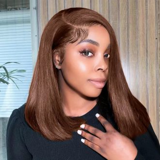 Double Drawn High Density Rich Chocolate Brown 4×4 Lace Closure Straight Blunt Cut Bob Wig