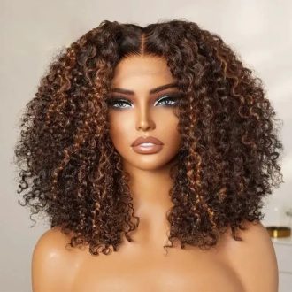 Fabulous Highlight Jerry Curly Short Bob 13*4 & 4*4 & 5*5 Transparent Lace Wig