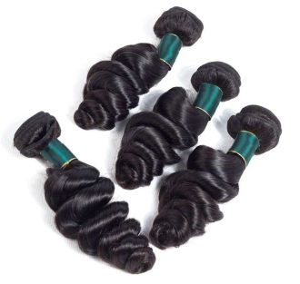 4 Bundles 10A Loose Wave Brazilian Human Hair Bundles Natural Color