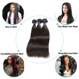 9A Straight Virgin Hair 3 Bundles With 13×4 Frontal Brazilian