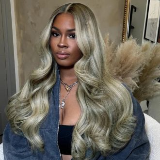 Grey and Blonde Balayage Glueless Pull Go Cap Beginner Friendly Bouncy Body Wave Lace Front Wig for Black Women