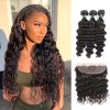10A Loose Deep Wave Brazilian Hair 3 Bundles With Frontal Human Hair