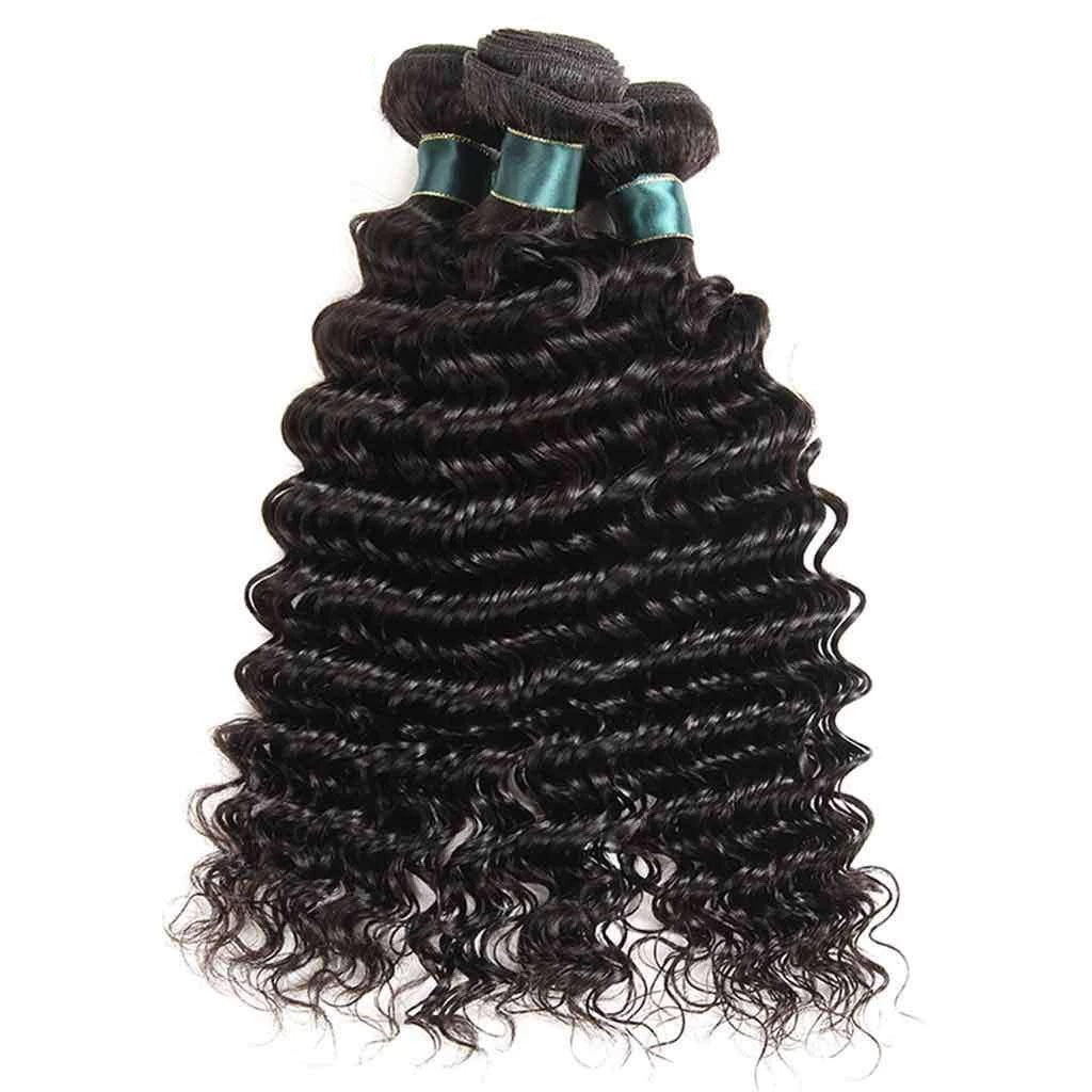 3 Bundles 9A Deep Wave Human Hair Bundles Brazilian Virgin Hair Natural Color