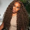 360 Lace Frontal 4# Chocolate Brown Wig Deep Wave Human Hair Wigs Transparent Lace Straight Wig
