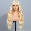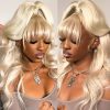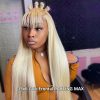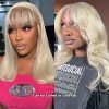 613 Blonde Straight Colored Wigs With Bangs 13×6 Transparent Full Lace Frontal Wig High Quality Remy Hair