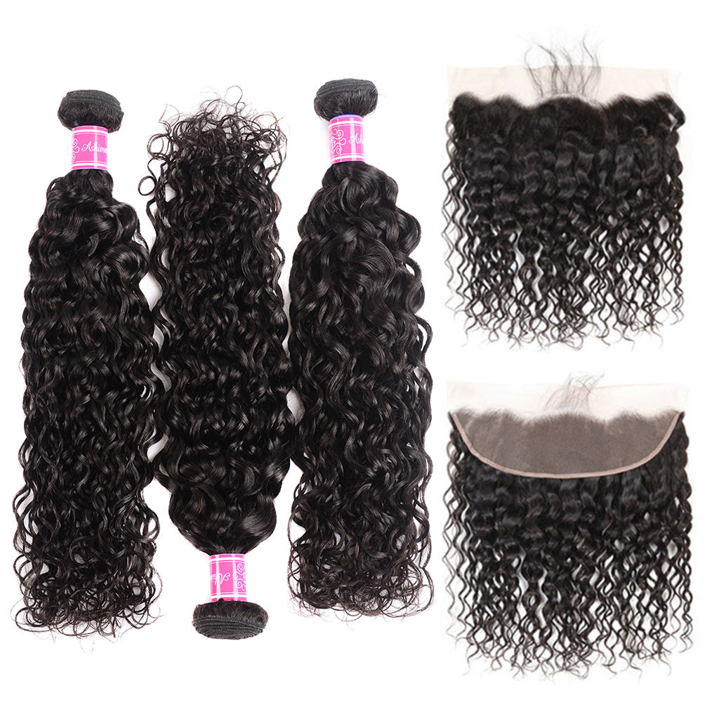 9A Grade Water Wave 3 Bundles With Frontal Indian Virgin Hair