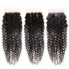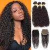 9A Kinky Curly 3 Bundles with Lace Closure Natural Color Brazilian Virgin Hair