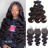 9A Peruvian Straight Hair 4 Bundles With Lace Frontal Human Hair