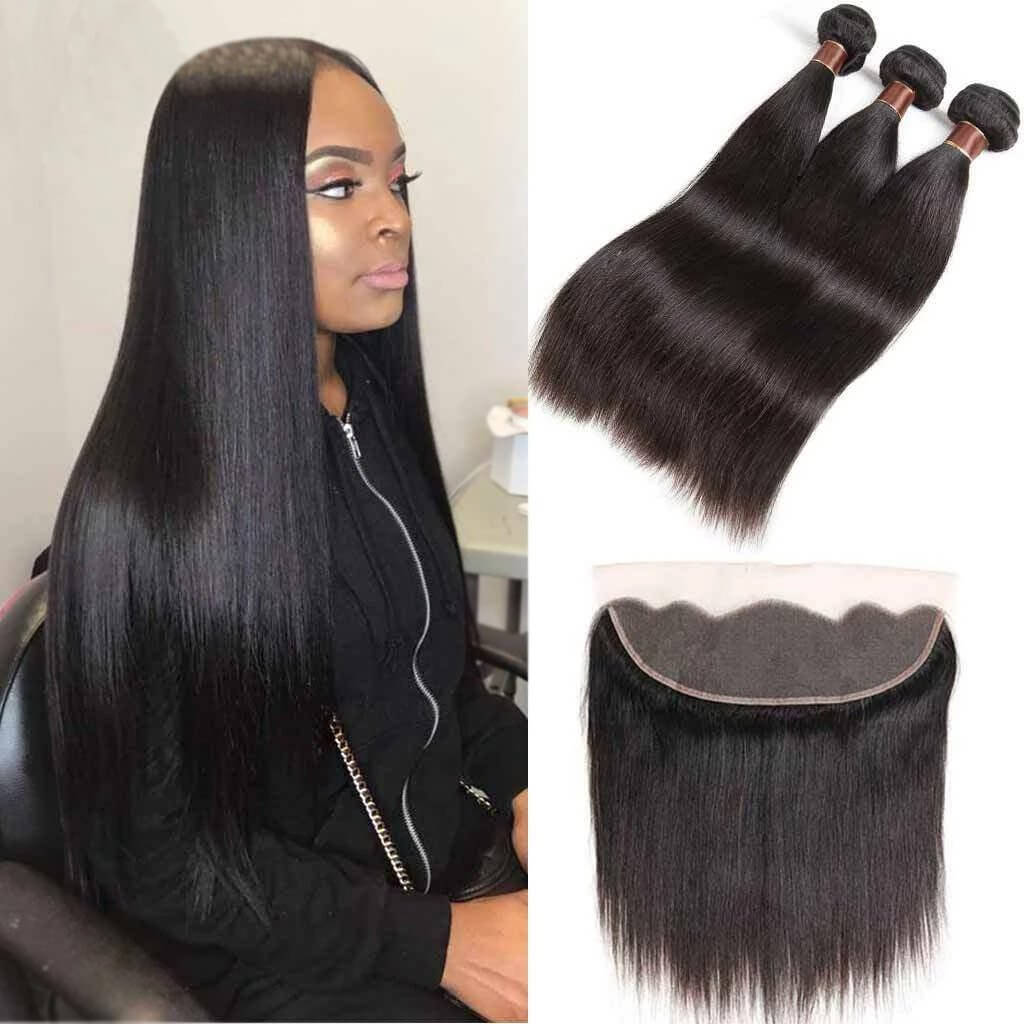 9A Straight Virgin Hair 3 Bundles With 13×4 Frontal Brazilian