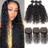 9A Water Wave Virgin Hair 3 Bundles with Closure Natural Color Malaysian Hair