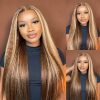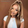 Ashimary 360 Invisi Strap Upgrade Glueless Highlight Brown Kinky Straight Lace Frontal Wig With Pre-Bleached Seamless Knots 4D Auto-Fit Cap