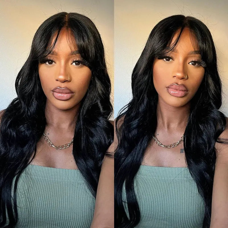 Ashimary Clip In Curtain Bang Hairstyles with Temples Melt Lace Natural Black Human Hair Extension