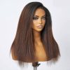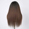 Black Brown Ombre Kinky Straight Half Wig With Drawstring Glueless Wear Go 3 in 1 Wig Human Hair