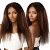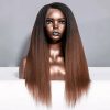 Black to Brown Ombre Yaki Straight 360 Skin Lace Frontal Invisi Strap Pre Everything Glueless Long Wig