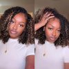 Blonde Highlight Kinky Curly QuickCurl Drawstring Half Wig Human Hair Curly 3 In 1 Half Wig