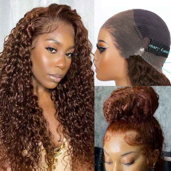 BOGO Invisi Strap Snug Fit 360 SKin Lace Chocolate Brown Water Wave Bleached Knots Glueless Lace Wig