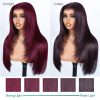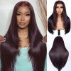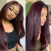 Dark Plum Color Straight Glueless Invisi Strap 360 Lace Frontal Wigs Tight & Neat Pre-Cut layered Optional