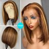 Double Drawn High Density Brown Highlight Bob Lace Wig Brazilian Human Hair