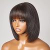 Flash Sale Realistic Look Pull Go Glueless Bob Wig With Bangs Human Hair Wig