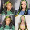 Green Color Highlight Lace Wigs Skunk Stripe Hair 4*4 13*4 Lace Front Wig 180% Straight Brazilian Human Hair