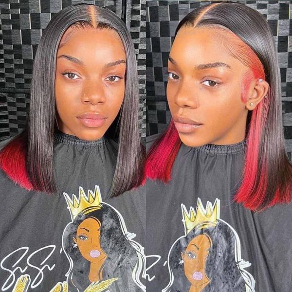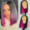 Hidden Color Bob Short Hair Peekboo Highlight Pink Transprant Lace Wig
