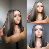 Highlight Mixed Blunt Cut Double Drawn High Density Bob Transparent Lace Wigs