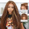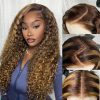 Honey Blonde Highlight Water Wave Pull Go 13×6 Full Skin Lace Wig Tiny Knots Glueless Wig