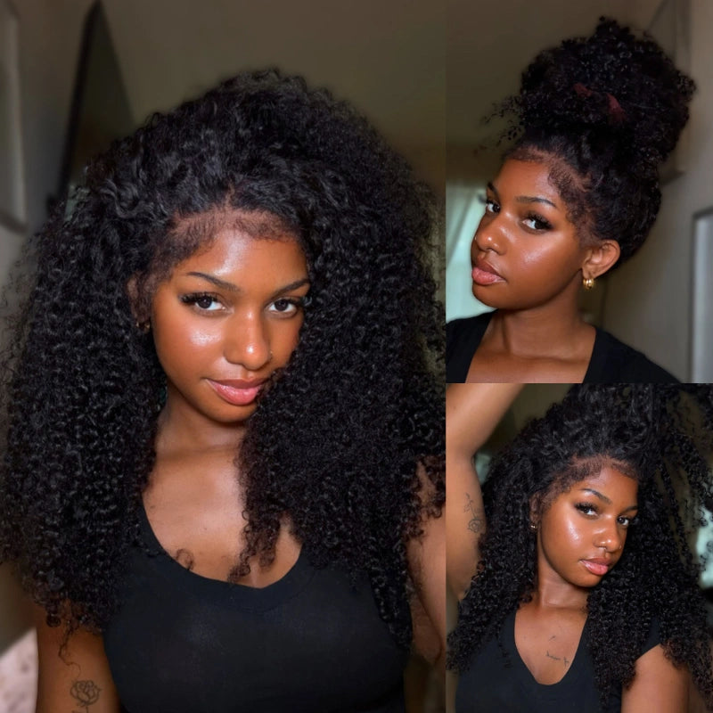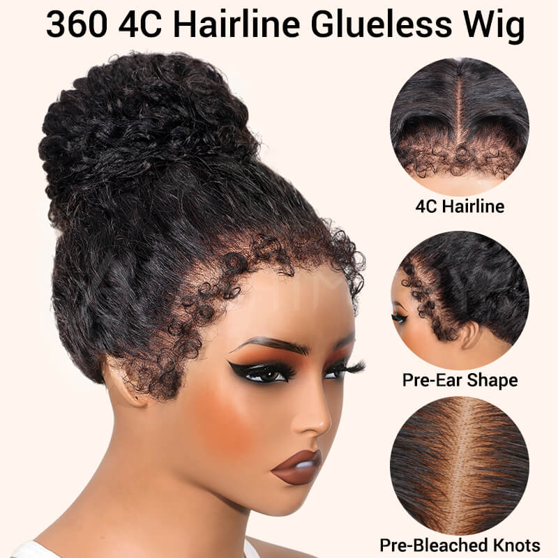 Kinky Curly Invisi Strap Snug Fit 360 Transparent Lace Frontal BleachedKnots Pre Cut Lace Wig
