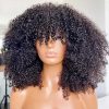 Kinky Curly Wig with Bangs Cost-effective To-Go Wig 10A Human Hair