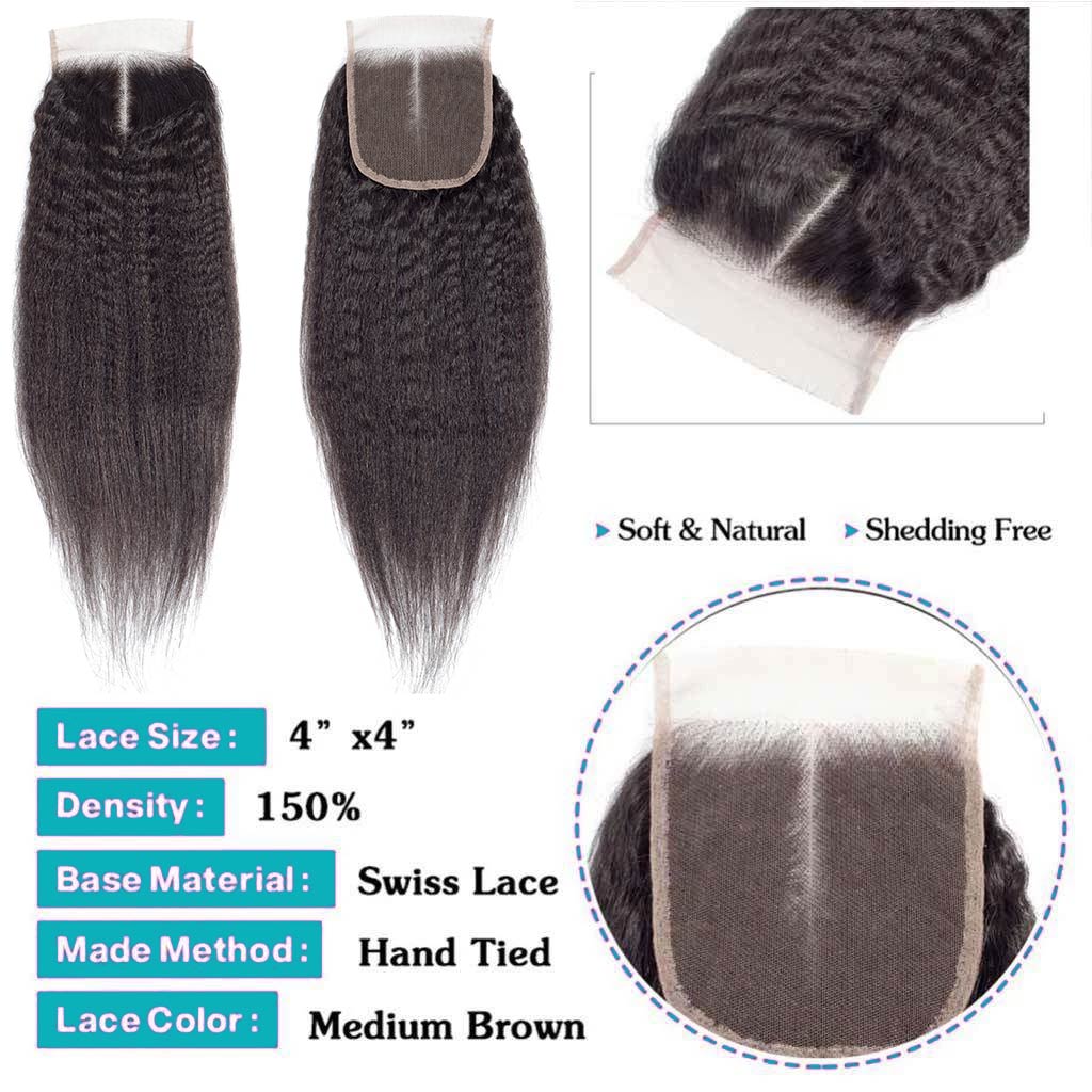 Unleash your bold and confident style with our Kinky Straight Hair. Designed for those who crave a unique and edgy look, this kit offers kinky straight hair bundles and closure for you to DIY your own style.