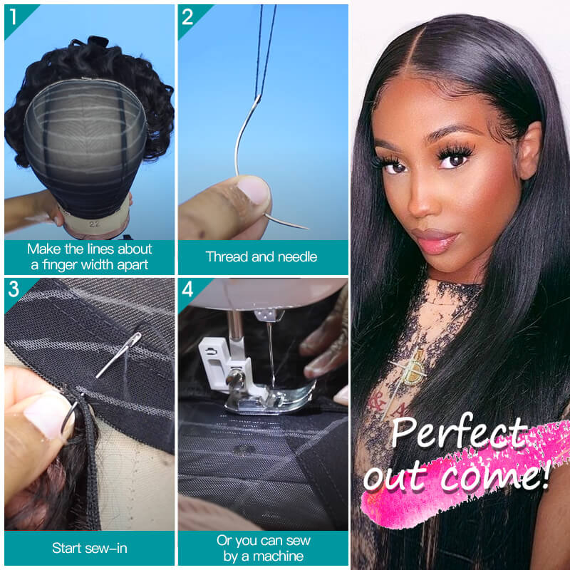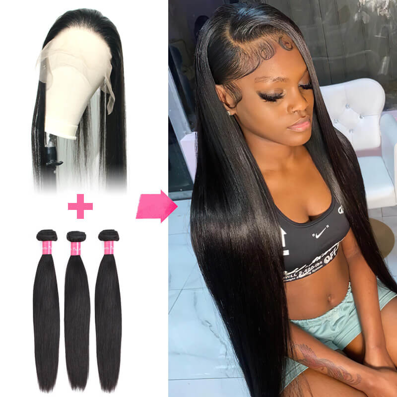 Lace Front Wig Cap with Hair Bundles 10A Top Grade Straight Virgin Hair