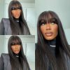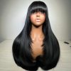 Layered Cut with Bangs 4×4 Transparent Lace Closure Wig Straight Human Hair 180% Density