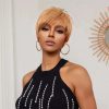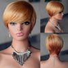 Pixie Cut Short Hair Blonde Ombre Human Hair With Bangs Straight Layered Wigs No Lace Bob Style