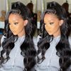 Pull Go 13×6 Full Glueless Wig Transparent Lace Front Wigs Body Wave Natural Black Ashimary Hair