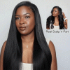 Pull Go Wig | Real Scalp Straight V Part Human Hair Beginner Friendly Thin Part Wig Without Leave Out