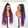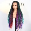 Rainbow Boho Curls Knotless Braided Wig Full Lace Frontal Multicolor Ombre Lightweight & Pre-Styled