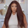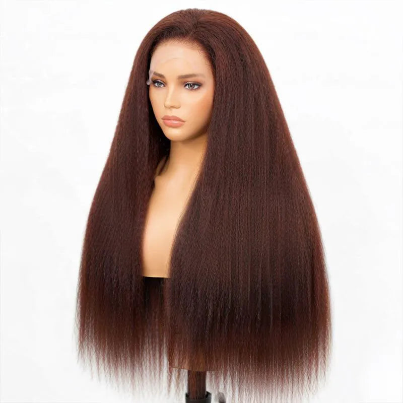 Reddish Brown Colored Kinky Straight Human Hair Lace Frontal Wigs 13×4 4X4 Ashimary Virgin Hair Front Wigs