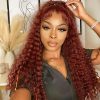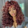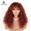 Reddish Brown Curly Wig with Full Bangs Machine Made Cost-effective Human Hair Wig 250% Density