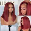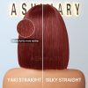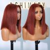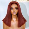 Reddish Brown Yaki Straight Pull Go 4×4 Lace Closure Bob Wig Double Drawn Silk Press Natural Look 100% Human Hair
