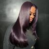 Salon Layered Cut Dark Plum Straight Wig Pull Go 13×4 Lace Tiny Knots Glueless Wig Siuts All Heads