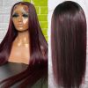 Straight Dark 99J Burgundy 13×4 Lace Front Wig Glueless Wigs 100% Human Hair
