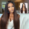 Yaki Straight Pull Go 13×6 Full Wig Transparent Lace Frontal Black to Brown Ombre Human Hair Wig Parting Max Glueless Wig